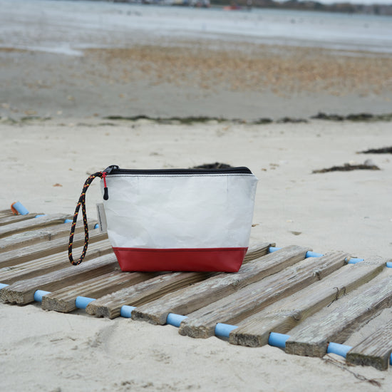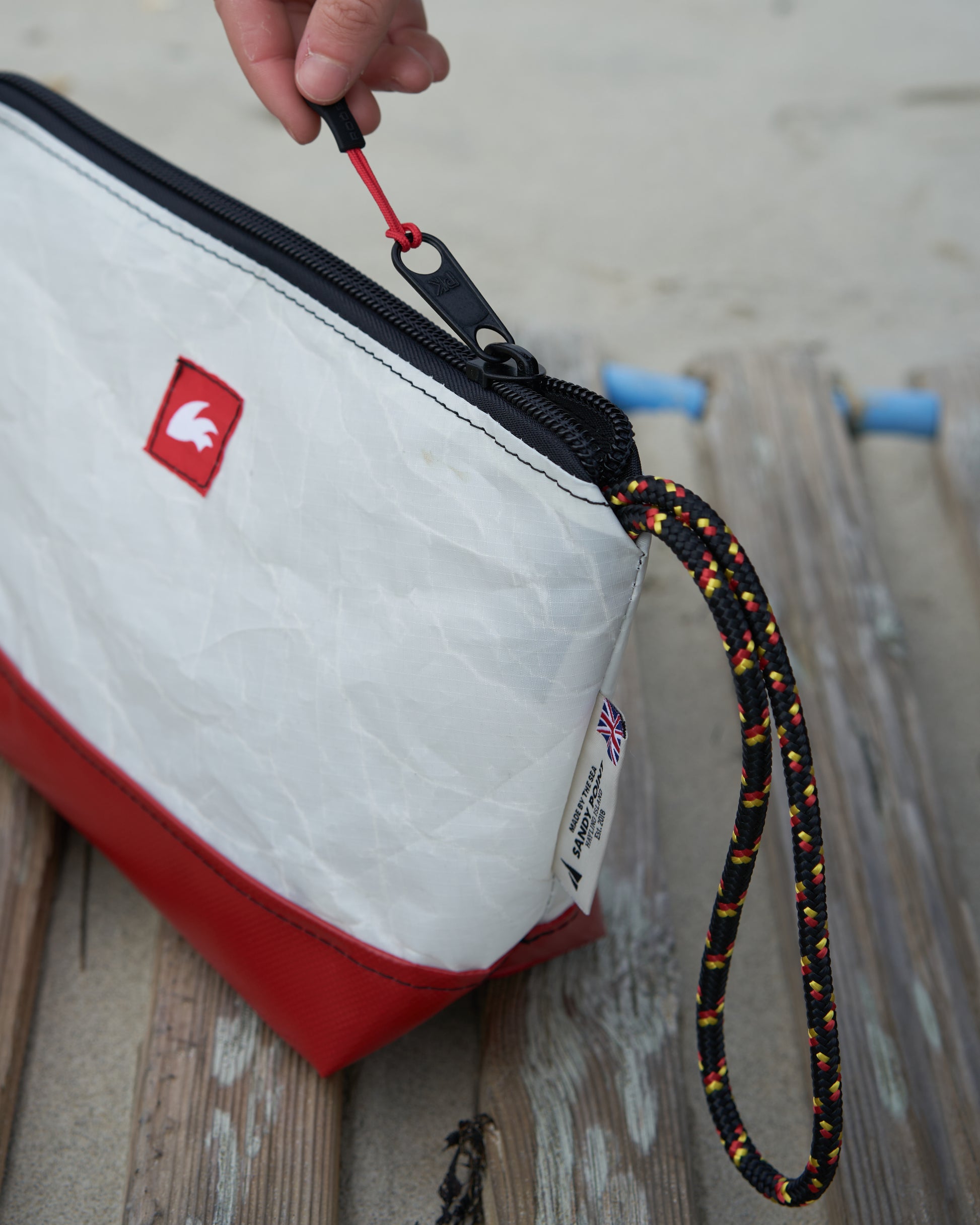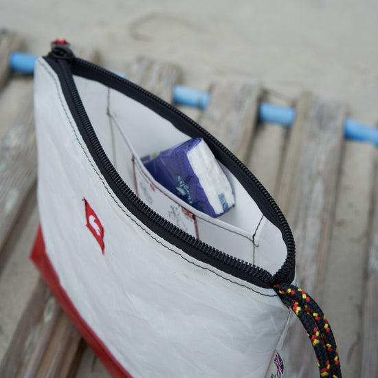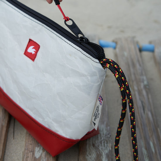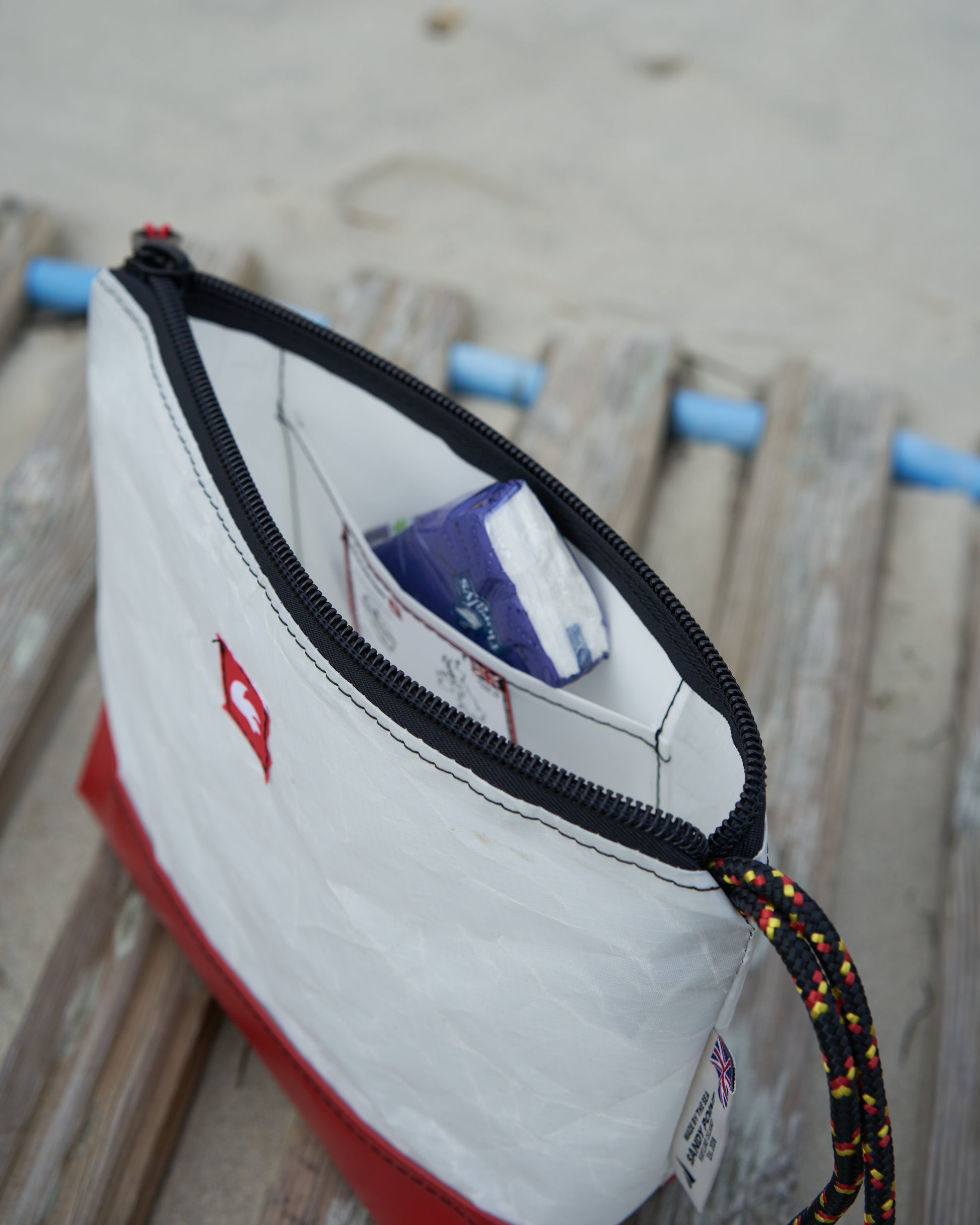 This eco-friendly wash bag has been created using upcycled sails and Rooster rope offcuts in collaboration with Sandy Point Watersports at Hayling Island, on the South coast of England. We're thrilled about this collaboration and the opportunity to support a local business near the sea, who share our enthusiasm for the sea and values.