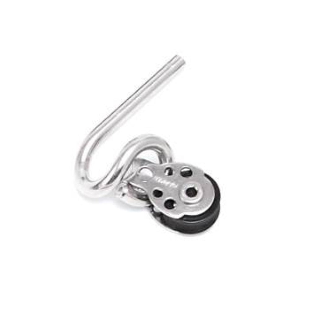 A Harken Dinghy Hook attached to a 16mm harken air block - used on the outahul at the clew hook - top in picture