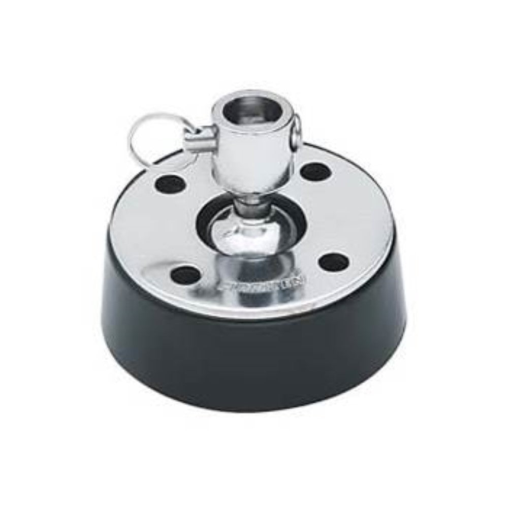 Harken 461 High Load Ball/Socket Swivel Base for 12mm Post Blocks. The ball-and-socket design lets blocks articulate up to 45 degrees and swivel freely. This base may be fitted with a spring but the block won´t hit the deck without one.