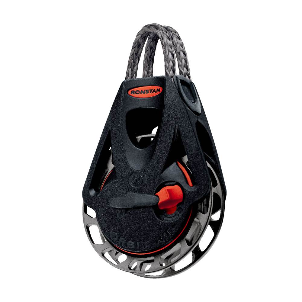 Ronstan RF56101 Orbit Ratchet Block. Designed for applications where weight is of paramount importance. The securing loop is easily changed and we suggest that you use either a forged eye or shackle to secure the block as pressed steel fittings can be sharp and will prematurely wear the rope mounting.