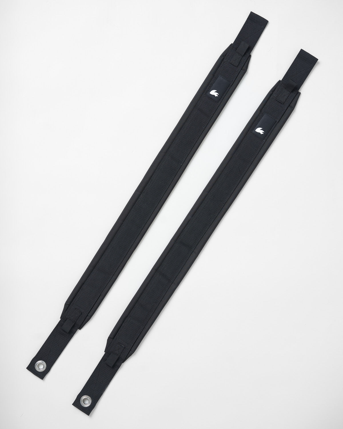 Rooster toestraps use a unique rubber compound that has a very high coefficient of friction, whilst also being light and durable. Our new Pro Plus Range has this rubber added to the bottom of our padded toestrap. Rooster Pro Plus Padded straps are super grippy with any make of boot - but they work specially well with our range of Rooster boots. The overall length (1050mm) is measured from the end of the toe strap (screw on end) to the eye centre end. The screw on end tab of the top strap is approx. 100mm long to allow for some flexibility when fitting.