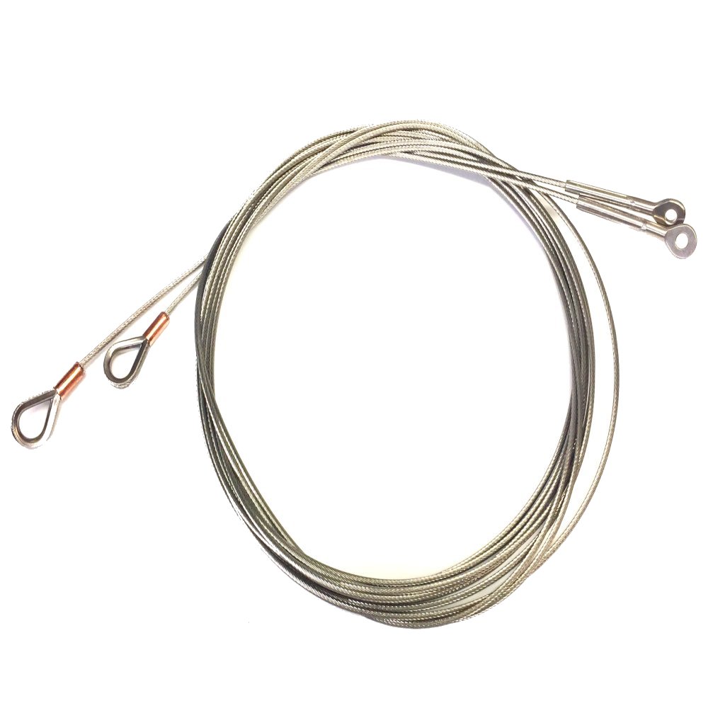 Replacement Tasar shrouds set made from 2.5mm diameter wire, (1x19) with a hard eye at one end, and a swaged eye at the other end.