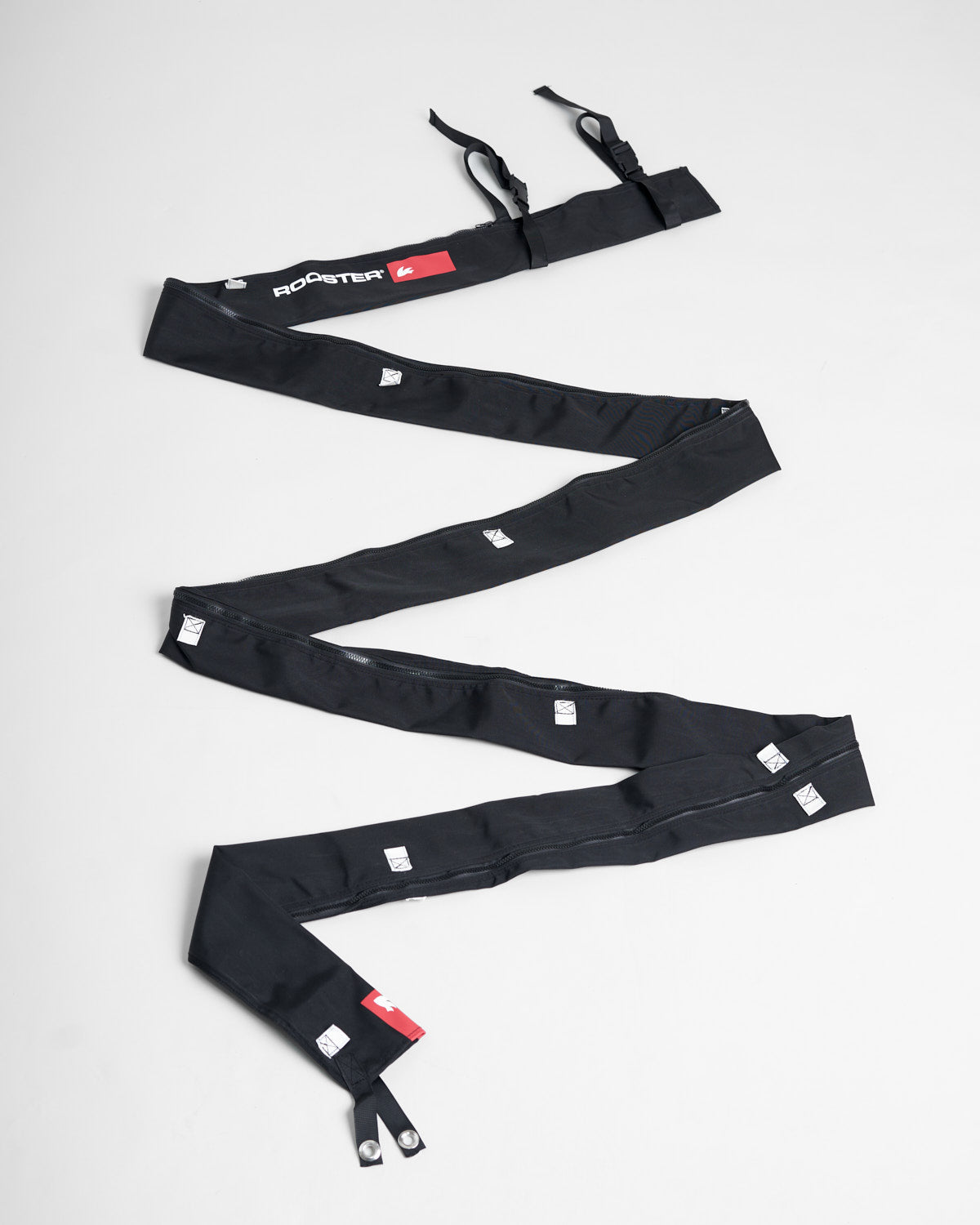 A UV mast protector sleeve in black. A durable, breathable cover with Rooster Branding.