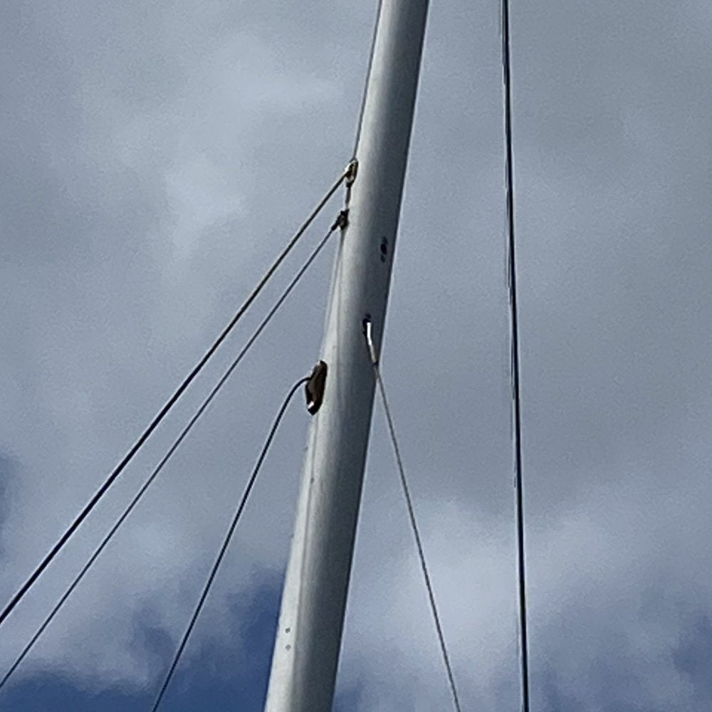 Laser Statos forestay 2mm dia. wire 1 x 19, hard eye to hard eye. Complete with 1m of Rooster Allspec Pro 3mm rope to allow the forestay to be tied off at the bow.