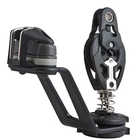 Designed for use on both dinghies and keelboats which require a central jammer. Featuring a cold forged bearing system which has a ball-locating groove for smooth rotation, whilst preventing the lateral movement of the arm. The arm can be set to rotate at 180, 220 or 360 degrees by adjusting the stopper pins on the underside of the arm.The jammer arm angle has been carefully optimised to ensure easy cleating and uncleating when required.