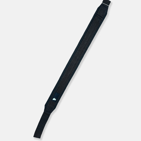 Using an ingenious length adjustment system and its curved stitch terminations. By cutting the curved stitched terminations at various lengths, you can make a Toestrap from 850mm to 1000mm. The Toestrap is padded for most of the 850mm.