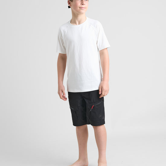 La camiseta técnica infantil para eventos es la prenda ideal para uniformar equipos, voluntarios o grupos en competiciones, regatas y actividades náuticas. Su diseño limpio y minimalista, con un branding discreto, está pensado específicamente para facilitar la personalización con logotipos o diseños propios.