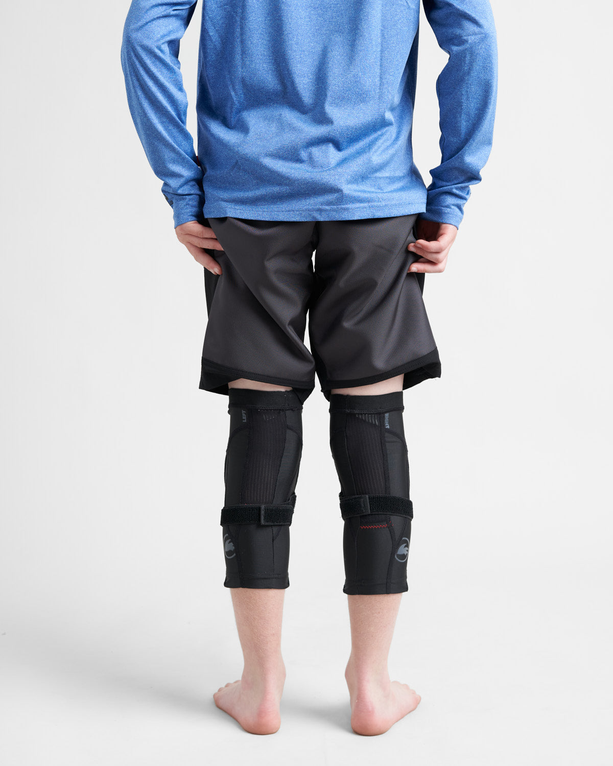 El sistema de sujeción incluye una banda elástica con silicona en la parte superior y detrás de la pantorrilla, además de una correa elástica con velcro debajo de la rodilla, garantizando que las rodilleras se mantengan siempre en su sitio.