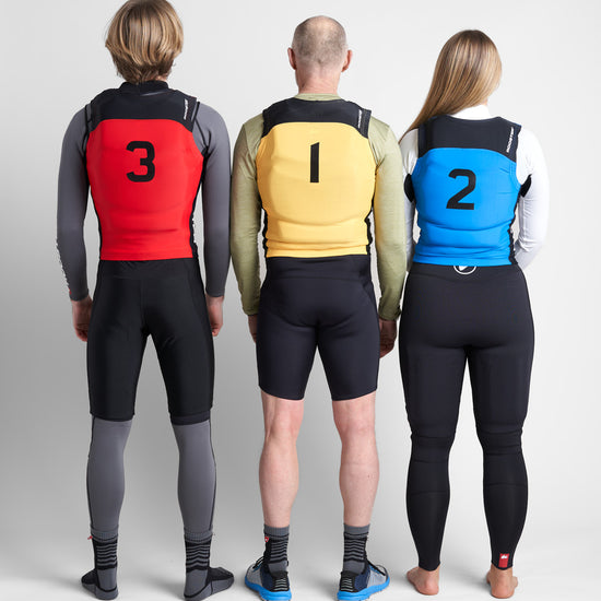 Perfecto para clubes, eventos o para tus propias regatas, cada pedido incluye un chaleco de cada color: amarillo, azul y rojo. Así podrás asignar equipos o turnos con facilidad.