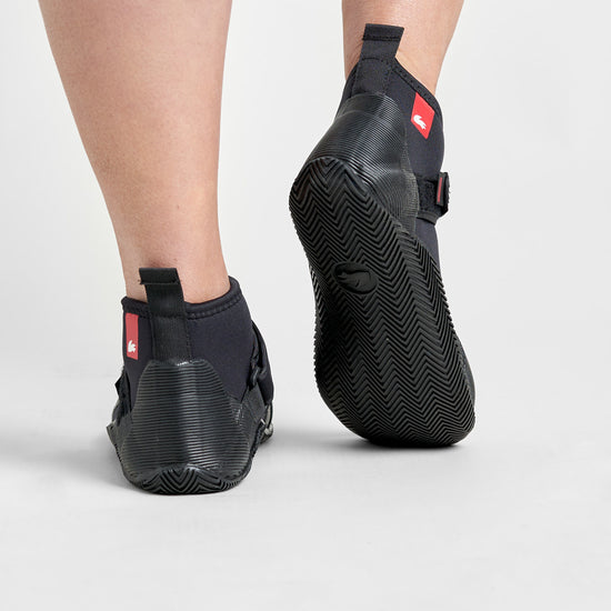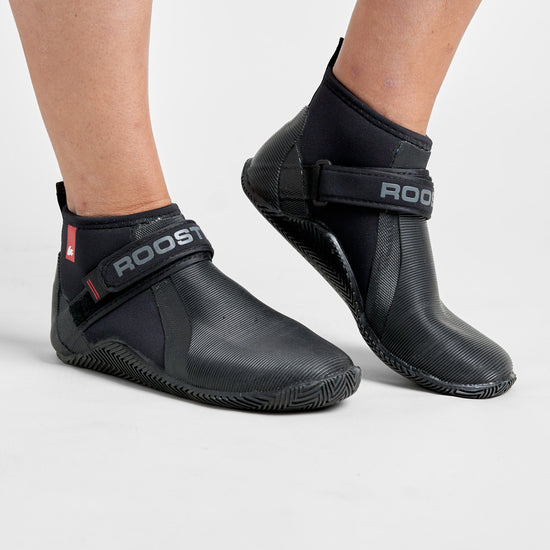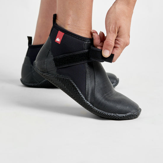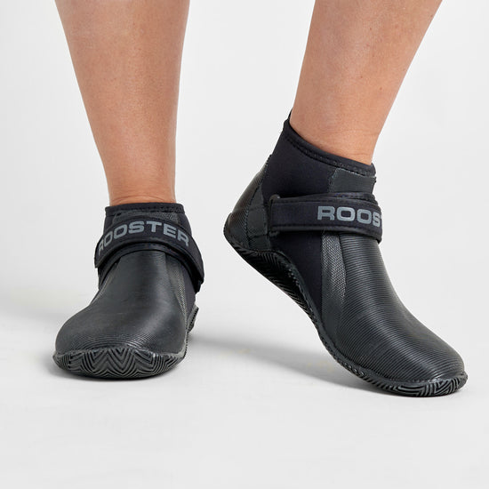 The Rooster Low Cut Boot manages to combine lightness and flexibility with comfort and support. The improved wrap-around ribbed sole offers protection and superior grip, which blends over the top of the boot into a super grippy compound which provides extra padding and hiking security where you need it most. The 5mm neoprene has a red, soft, plush lining with a reinforced heel support and pull tab to make it easier to put on and take off. There is an adjustable neoprene ankle strap and soft elastic binding at the top of the boot.