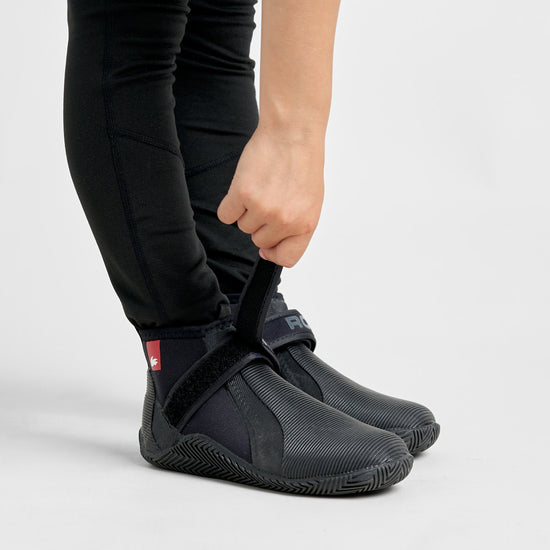 The Rooster Low Cut Boot manages to combine lightness and flexibility with comfort and support. The improved wrap-around ribbed sole offers protection and superior grip, which blends over the top of the boot into a super grippy compound which provides extra padding and hiking security where you need it most. The 5mm neoprene has a red, soft, plush lining with a reinforced heel support and pull tab to make it easier to put on and take off. There is an adjustable neoprene ankle strap and soft elastic binding at the top of the boot.