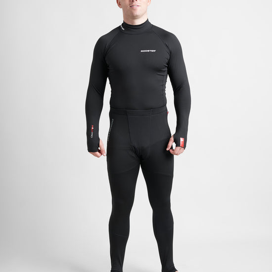 Rooster Polypro™ is constructed from a combination of Polypropylene (94%) and Elastane (6%). We've brushed the inner fabric surface to give it a thick, fleece-like, high quality texture which feels incredibly warm and soft next to your skin. The resulting garments provides excellent thermal qualities making it the perfect base layer. Polypropylene is naturally hydrophobic, which means the fabric feels remarkably dry, even when wet. Wear it next to your skin underneath our neoprene Longjohns and Tops - in fact the possibilities are endless - our Polypro™ base layers would be great under your ski suit, drysuit, winter cycling, kayaking, walking and anytime you need a thermal base layer..