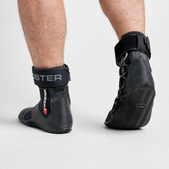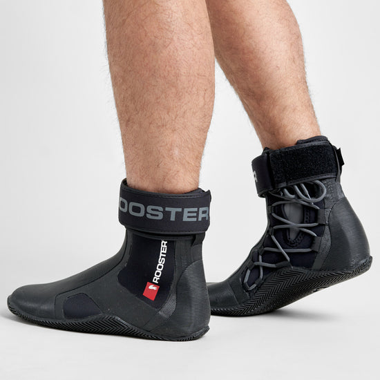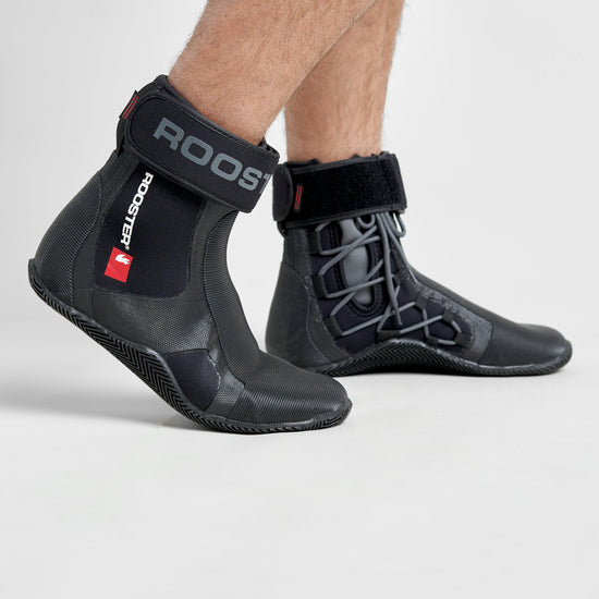 The Pro Laced Boots (made from 4mm lined neoprene) have been developed to give the wearer ultimate support for hiking and trapezing. The wrap-around ribbed sole (also with 4mm lined neoprene inside) offers protection combined with superior grip, which blends over the top of the boot into a super grippy compound providing extra padding and hiking security where you need it most.