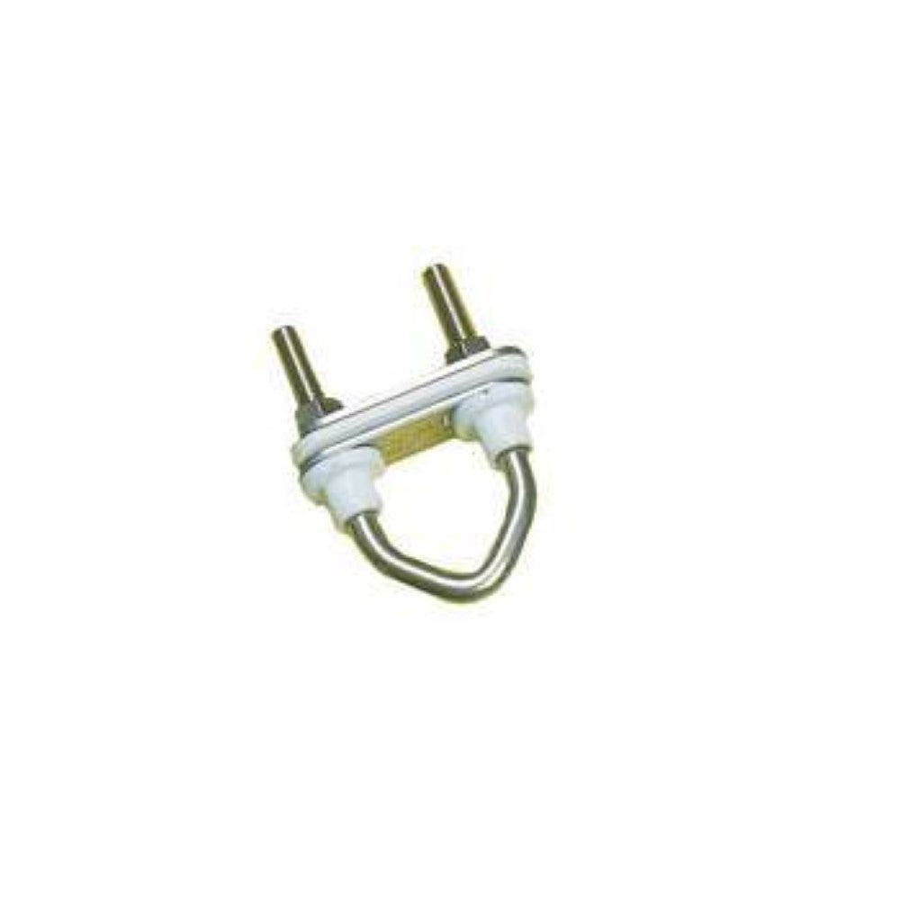 Seasure (part number 20.M4.25V) M4 Stainless steel V-bolt with 25mm thread length and plastic nuts on upper (low stress) side.
