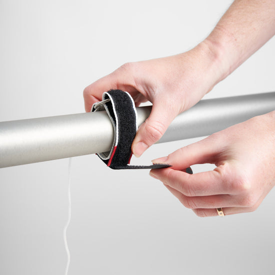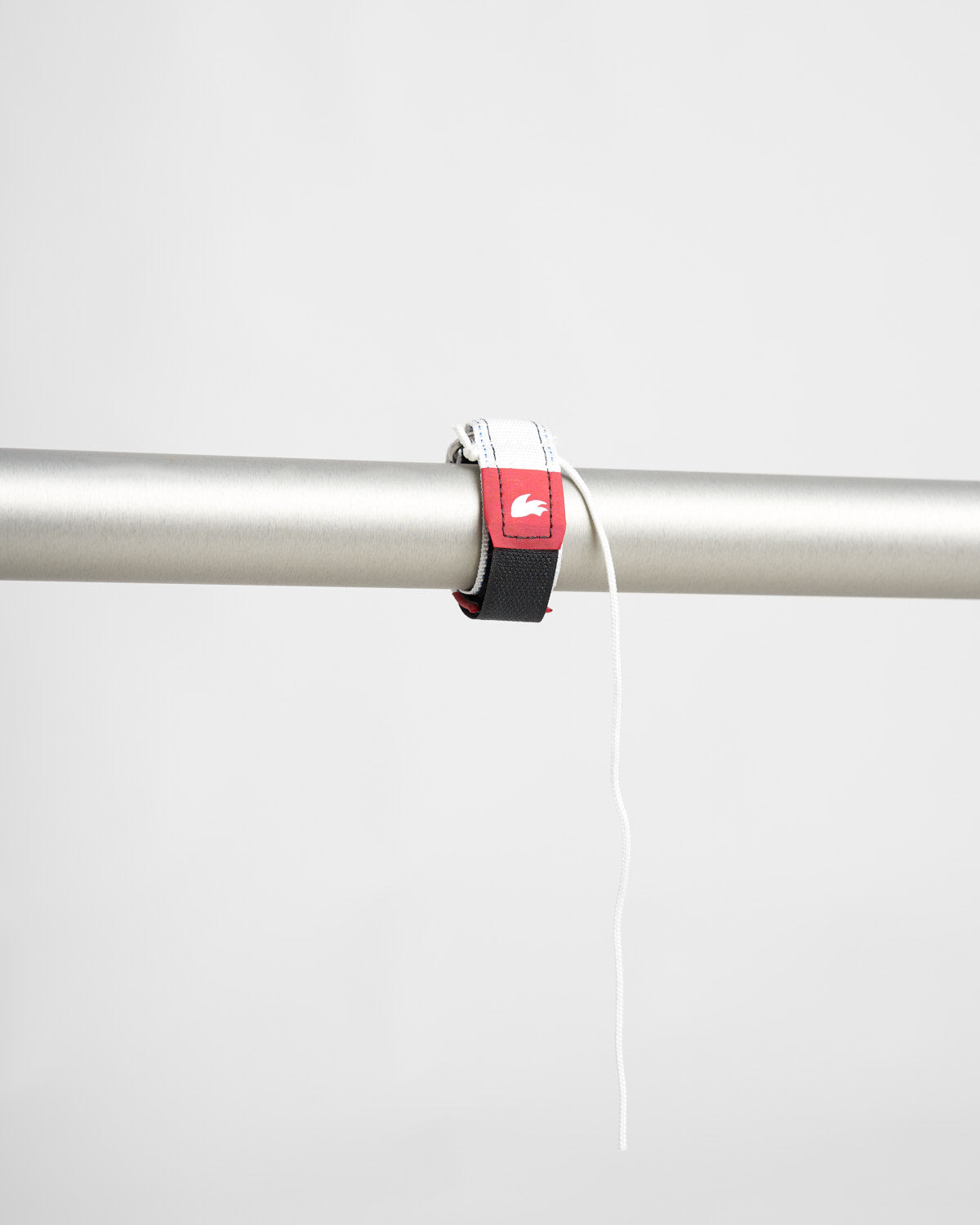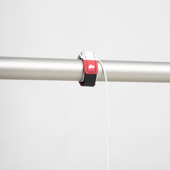 This clever design holds the clew of the sail onto the boom of your Topper®. The velcro has a locking strap (nominal 40mm dia.) to prevent accidental removal. The webbing is an expensive spectra webbing so that it slips nicely along the boom. (38mm dia. boom). Class legal complete with a retaining line, so it can be tied off to the Topper sail clew eye to prevent loss