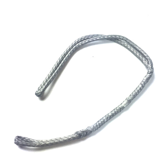 A Spliced loop to drop over the lower mast section and hold the block guiding the control to the deck cleats. There is a small spliced loop at the other end so the block can be 'cow hitched' on. (See image below).