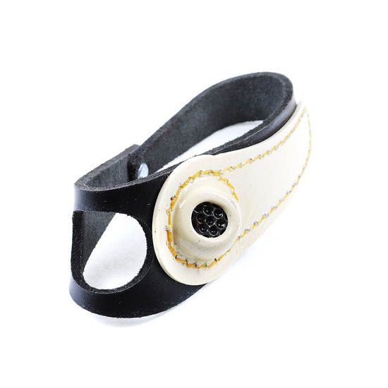 Simply slips over the hand and the hard pad allows a needle to be pushed through hard materials.