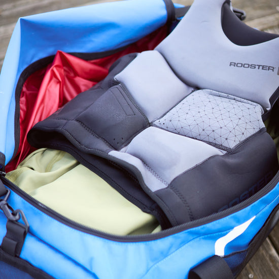 The Rooster® Carry All is available in 60L and 90L sizes. The 90L version has a huge capacity to fit all the gear you need inside. It includes a detachable padded shoulder strap, lockable heavy duty YKK® zips on the main compartment and internal mesh pockets for your valuables. This bag features a large separate wet compartment, accessible down the length of the bag, which is taped and completely waterproof. There are also four external mesh pockets on the outside, for those easy to access handy items – snack bars, burgee, shampoo….