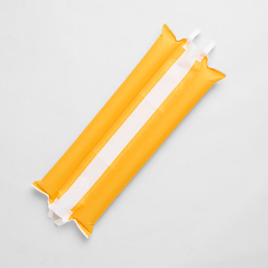 Each tube has a length approx. 90cm long and can contain 4 litres of air, so total buoyancy is 8 litres.