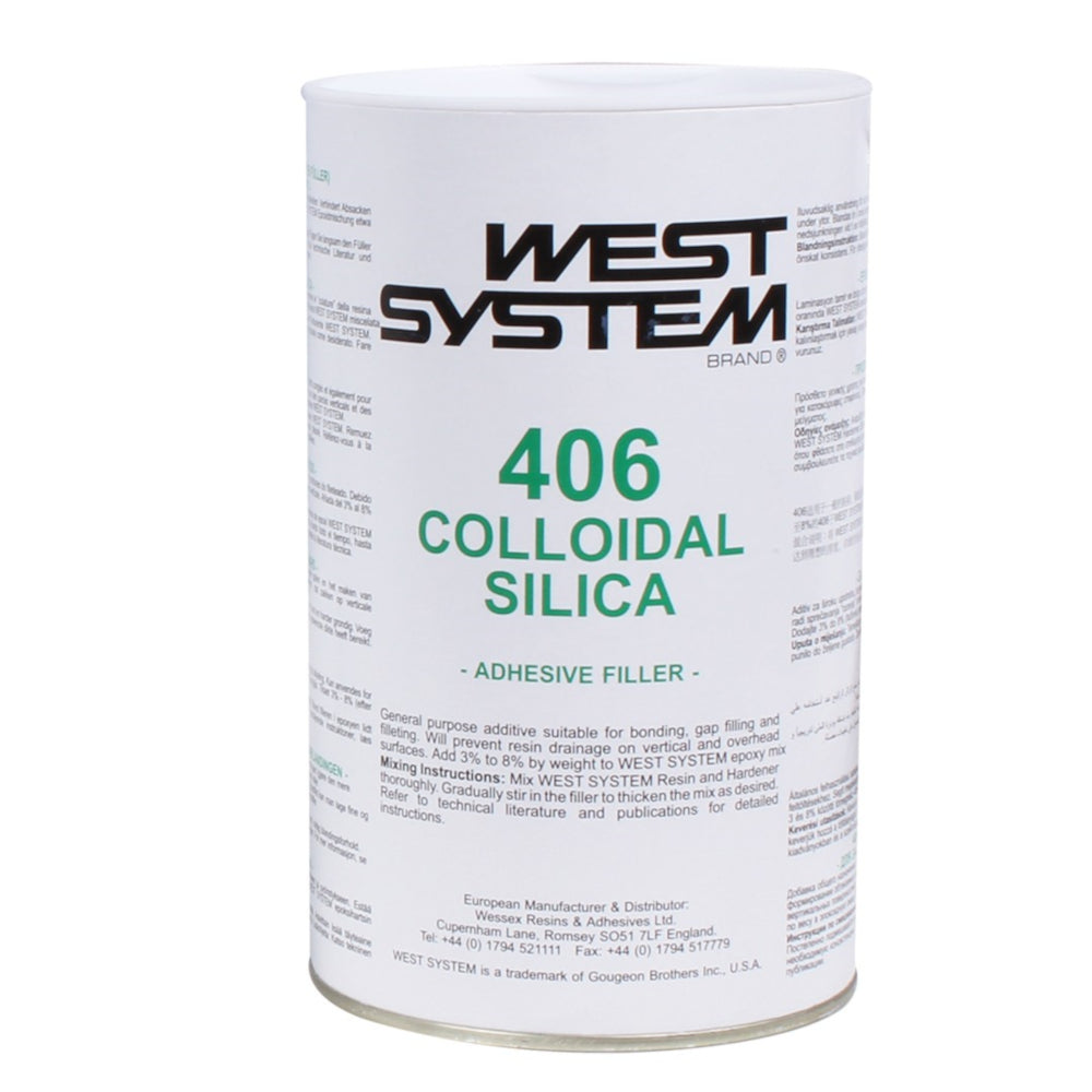 406 Colloidal Silica is an epoxy thickening additive used to control the viscosity of the epoxy. It prevents epoxy runoff in vertical and overhead joints. This is a very strong filler. It creates a smooth mixture, ideal for general epoxy bonding and filleting. It is also our most versatile epoxy filler. Often used in combination with other fillers, 406 can be used to improve strength, abrasion resistance, and consistency of epoxy fairing compounds. The result is a tougher, smoother surface.