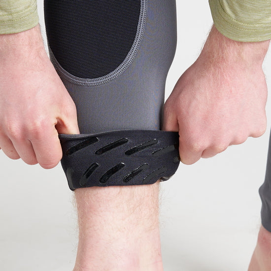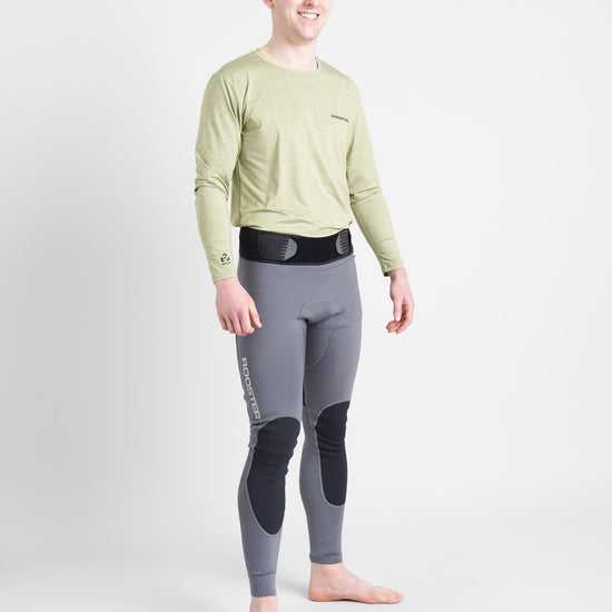 1.5mm Thermaflex neoprene leggings with Duratex II at seat part and knee/shin panel. There is capability to add ProHike pads into the seat part through a Hook & loop attachment at the inside surface. The fit has been developed for performance through a high curved waist profile with strong elastic tab adjustment pulling around the sides – perfect to get the perfect secure fit on a range of body shapes. Through the use of 2 panels above the Duratex II seat panel, position of the waistband is not compromised and movement is maximised especially when worn in conjunction with ProHike pads, which add weight.