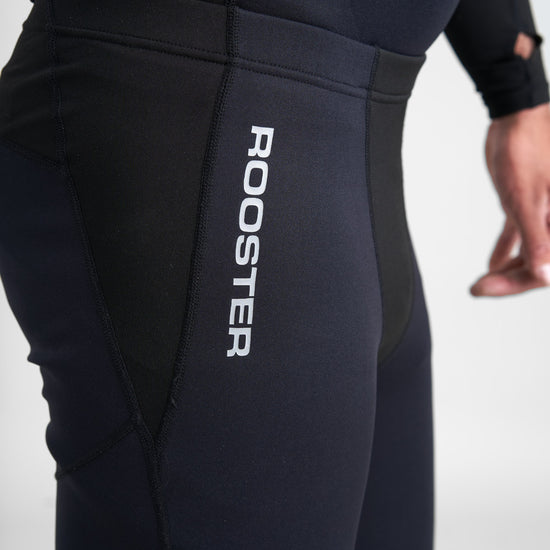 Our ‘hottest’ base layer in the range, these thermal leggings use a combination of two of our most popular fabrics for the utmost comfort and thermal performance. The main ‘heat’ boosting properties derive from its 0.5mm titanium lined neoprene used at the upper front legs, seat and back of legs. This fabric is a clever material that works with your body to regulate your temperature, where the titanium lining reflects heat from your body back onto your body, rather than letting it escape through the fabric. Through combining this ‘Hot’ fabric with our soft and stretchy Polypro™ on panels where you want the maximum movement and breathability, crotch/gusset, waistband and upper sides, these leggings will give unrestricted performance.