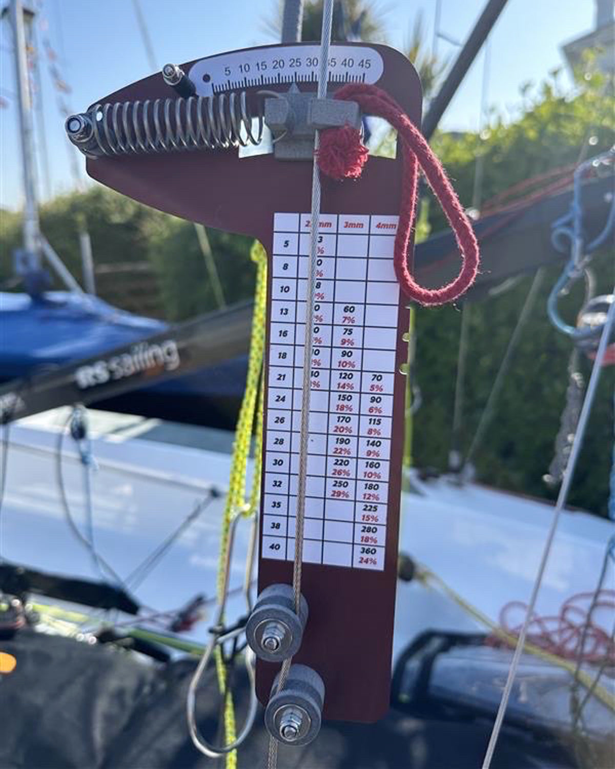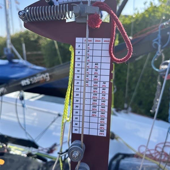 Professional Rig Tension Gauge for wire sizes 2.5mm to 4mm. Works with the same scale as the industry standard Loose tension gauge. To operate, remove the spring from the travel pin and attach to the slider, then operate as normal. When finished, keep the spring in good condition by replacing on the travel pin.