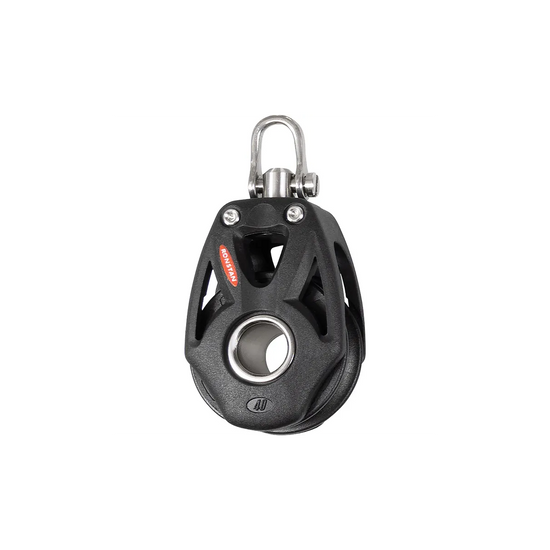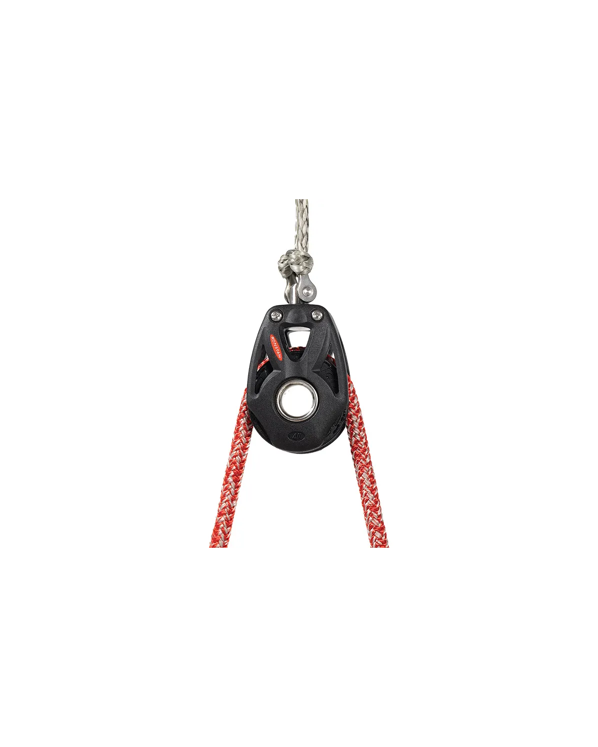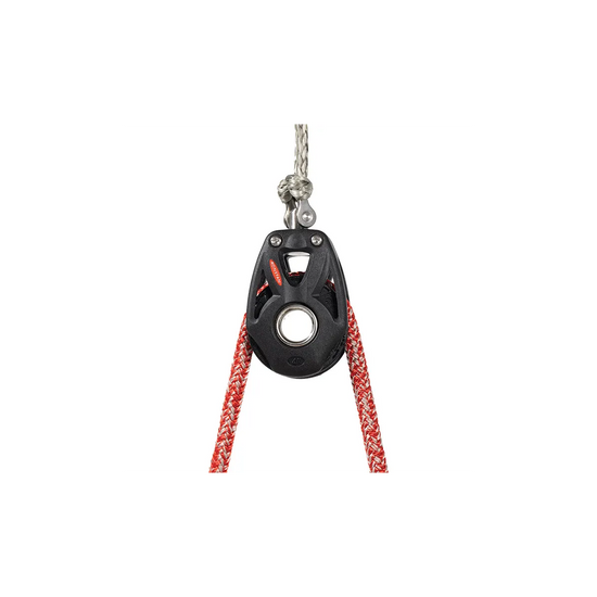 The RF48100 Single Block features a 40mm (1 9/16") sheave and incorporates our 2-stage bearing system. Ball bearings minimise friction while a secondary full-contact bearing maintains low friction across the full working load range. This product does not have a locking headpost, which is only available in the multiple sheave variants. RF48100 is free swivel rotation only. The RF48100 can accommodate a maximum rope diameter of 10mm (3/8").