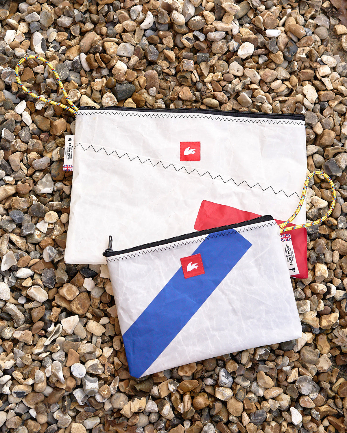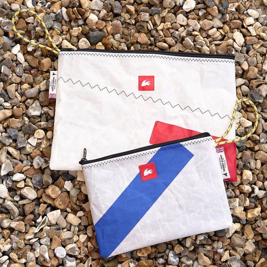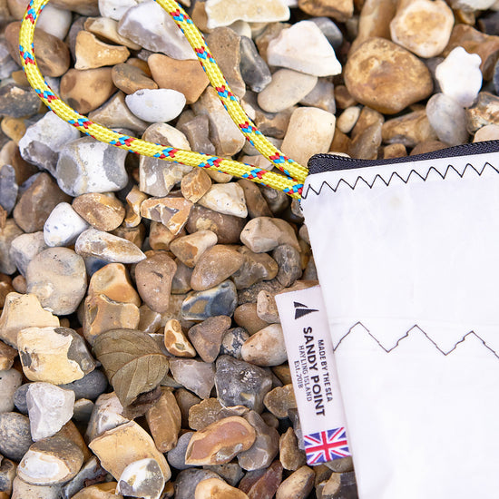 Created using upcycled sails and Rooster rope offcuts in collaboration with Sandy Point Watersports at Hayling Island, on the South coast of England. We're thrilled about this collaboration and the opportunity to support a local business near the sea, who share our enthusiasm for the sea and values.