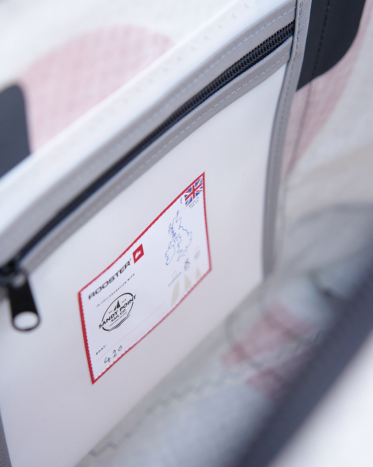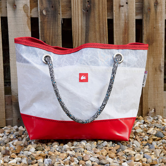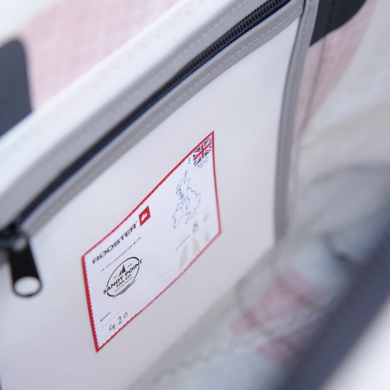 Created using upcycled sails and Rooster rope offcuts in collaboration with Sandy Point Watersports at Hayling Island, on the South coast of England. We're thrilled about this collaboration and the opportunity to support a local business near the sea, who share our enthusiasm for the sea and values.